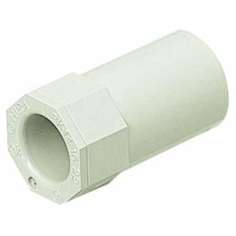 詳細: 衝撃に強い 特長 高耐候性 耐衝撃性 仕様 色:ミルキーホワイト 適合管:VE22 適合ノックアウト径:φ27mm・22(25)用 ネジの呼び:G3/4 耐衝撃性樹脂 ※防水パッキン(別途オプション)が取付可能です。